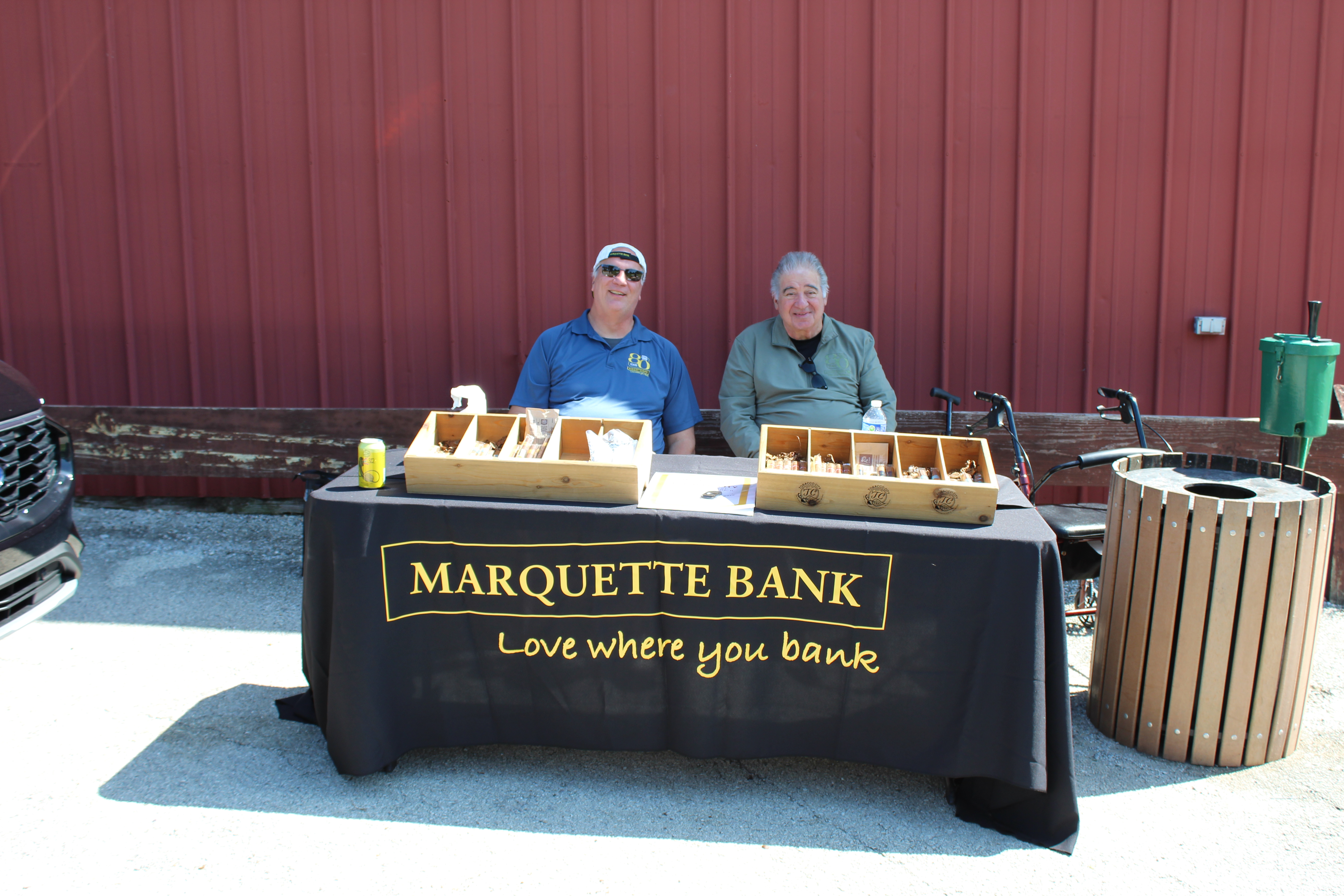 Marquette Bank Logo - Marquette Bank gold lettering in front of black box - under box is Love Where You Bank in red script.